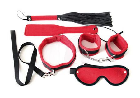 Эффектный красный фетиш-набор для любовных игр из 5 предметов: маска на глаза, плетка, наручники, ошейник, шлепалка. Идеальный набор для любителей острых ощущений! Красивая упаковка делает этот набор интересным вариантом подарка!