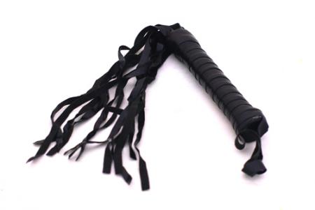 Черная небольшая плетка с удобной ручкой. Подойдет как для эротических игр, так и в качестве аксессуара для веселой вечеринки!