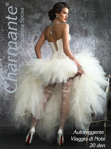 Изящные чулки с цветочным узором по задней детали. Широкая резинка на силиконовой основе - для особого комфорта. Прекрасное украшение ножек невесты в самый важный день!