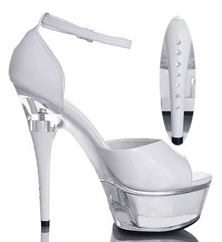 Сексуальные туфли стрип белые на прозрачной платформе и стразами на каблуке.